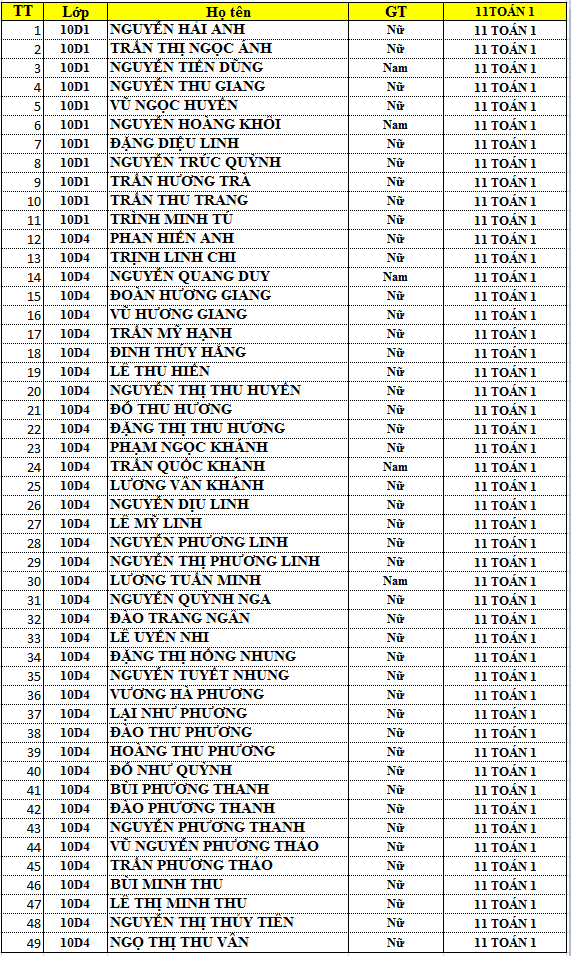 DANH SÁCH LỚP HÈ 2015 - 11 TOÁN 1