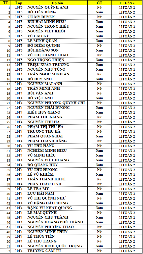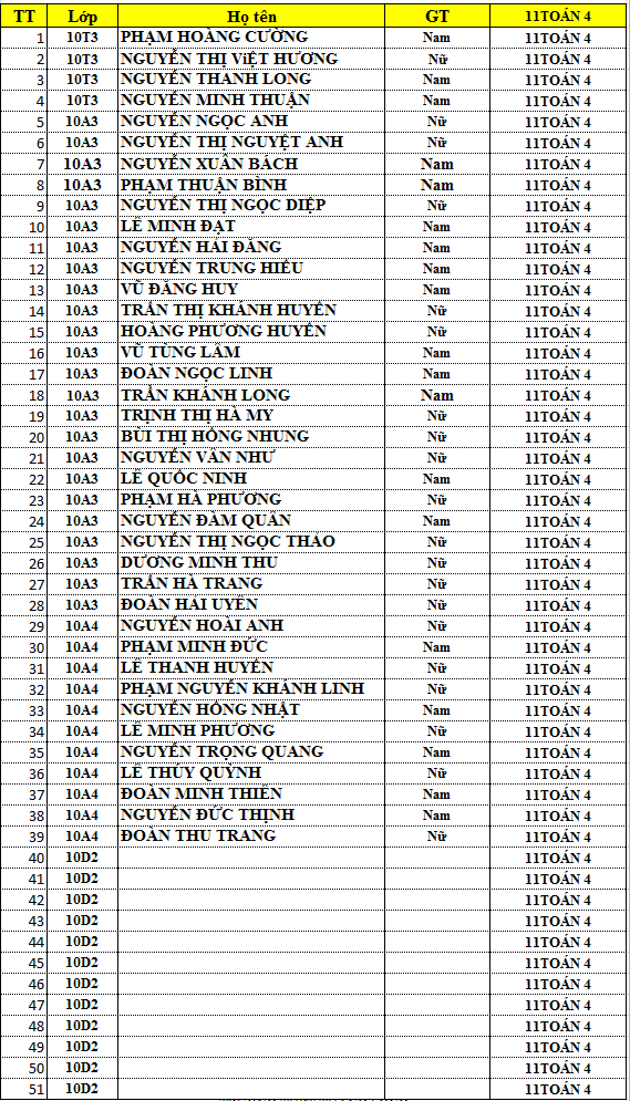 DANH SÁCH LỚP HÈ 2015 - 11 TOÁN 4
