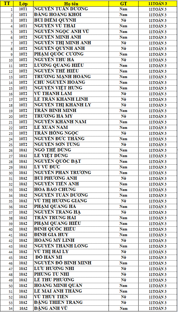 DANH SÁCH LỚP HÈ 2015 - 11 TOÁN 3