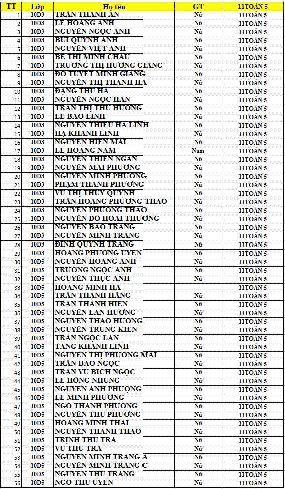 DANH SÁCH LỚP HÈ 2015 - 11 TOÁN 5