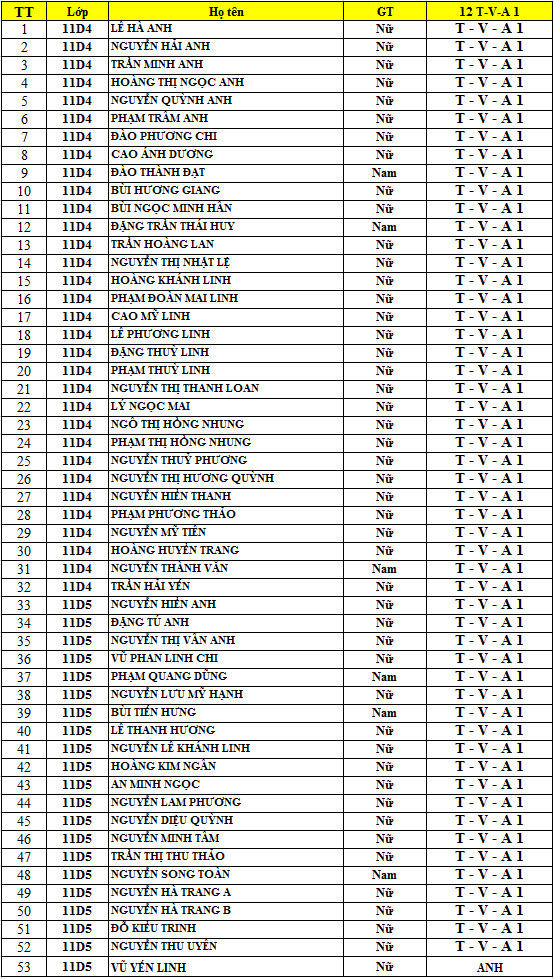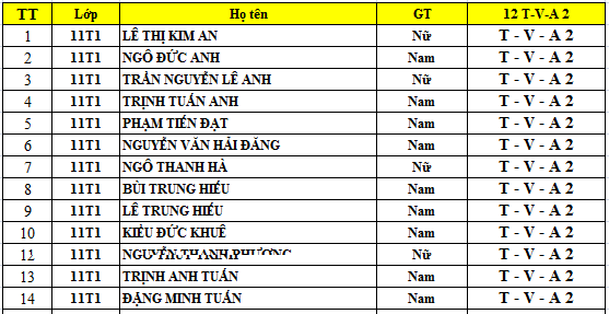 DANH SÁCH LỚP HÈ 2015 - 12 TOÁN1 - VĂN1 - ANH 1